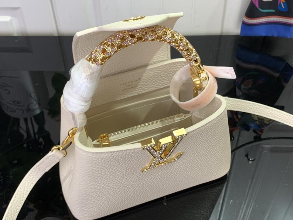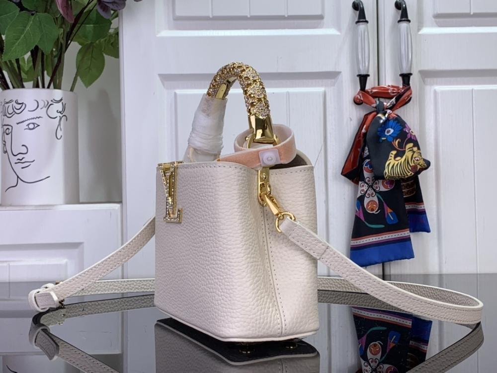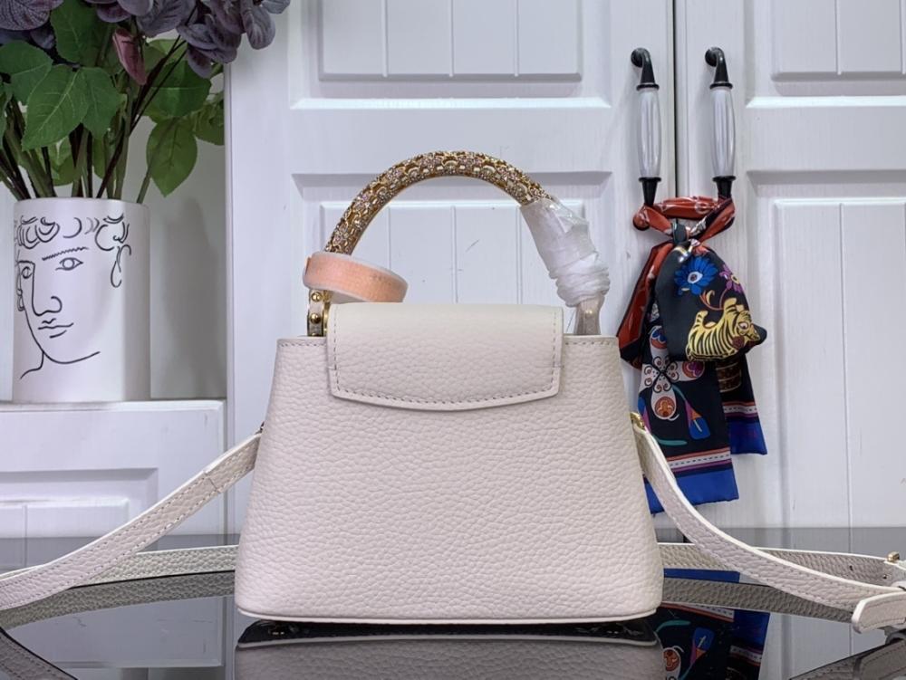 الخياطة الدقيقة والقطع المعدنية اللامعة تعكس جودة عالية واهتمام في كل تفصيل، مما يجعل الحقيبة قطعة فاخرة تكمّل أي لوك.
